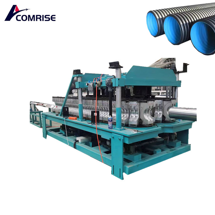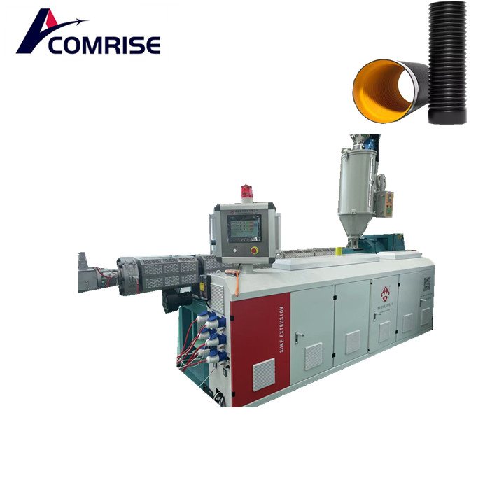 Large diameter double wall corrugated pipe machine is a mature product with advantages such as light weight, low cost, corrosion resistance, good ring stiffness, and good elasticity. Our company has been developing PE double wall corrugated pipe extrusion production line for more than 20 years. We have a complete series of double wall corrugated tube machines: horizontal, vertical, and shuttle. Our machines can process various materials, including HDPE, PP, PVC, etc.